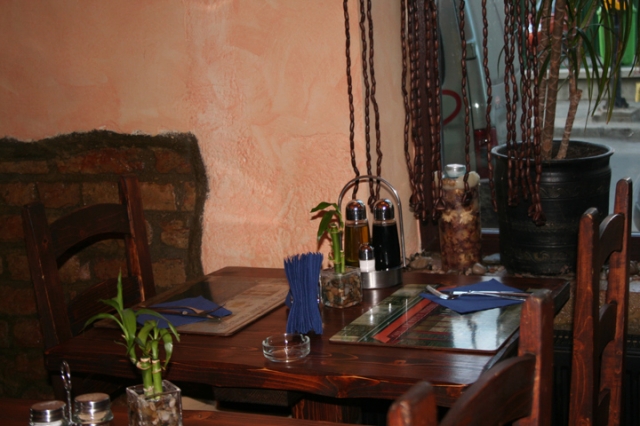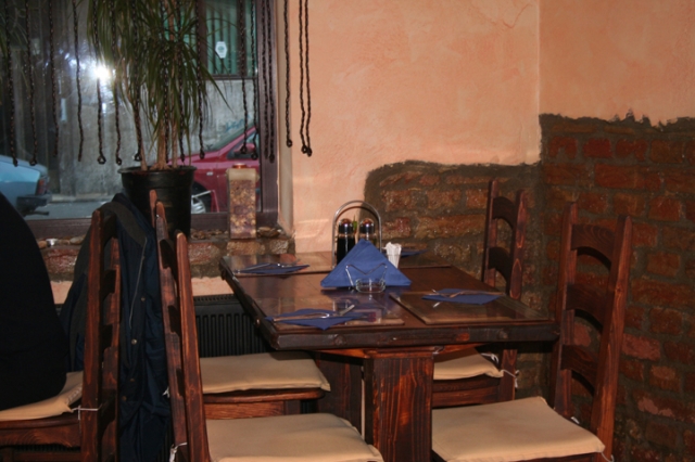 Ne-am asezat la o masa si am observat ca eu aveam o furculita iar prietena mea cutitul, lucrul acesta a culminat cu faptul ca ospatarul ne-a impartit o apa plata in doua pahare, chiar daca comandasem doua. Se pare ca aici totul se imparte frateste…