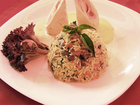 Va intampina cu un meniu bogat si variat, in care se regasesc cele mai cautate preparate internationale, si o selectie din bucataria orientala. Legumele cele mai savuroase, orez pregatit dupa cele mai originale retete, se combina imbietor cu fructe de mare sau preparate culinare cu sosuri excelente, pentru a oferi papilelor dumneavoastra gustative un adevarat regal gastronomic.
