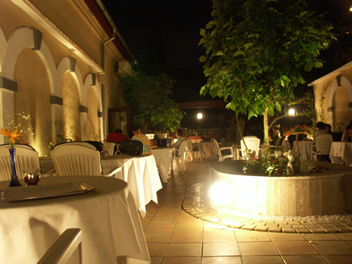 Intr-adevar, servirea este prompta. Dar, avind in vedere ca numarul chelnerilor (4-5) este mai mare decit al clientilor, nici nu e de mirare. Restaurantul este elegant, daca nu se ia in seama fetele de masa (cam) muirdare, patate de sosuri. Atmosfera intima, dar cine are chef de lume in jur, sa se abtina! Muzica discreta si (asta e placut) pe fiecare masa se gaseste o orhidee. Ce-i drept, cam ofilita, dar sa nu fim circotasi.