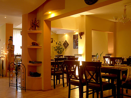 Treceam cu masina pe M. Eminescu si, stand la inevitabila coada de la semafor, am fost atrasa de numele unui restaurant nou aparut pe aceasta strada: Siam – Thai Restaurant. Am tras pe stanga (caci acolo este) si am intrat din pura curiozitate. M-au frapat decorurile interioare, din lemn sculptat, specific thai. Am avut ocazia sa calatoresc in Thailanda si am fost placut surprinsa de aerul tipic thai. M-au intampinat doi ospatari zambitori si amabili care s-au oferit sa-mi prezinte noua locatie si meniul pregatit de doi bucatari thailandezi pe care i-am zarit pe geamul de la bucatarie care da in terasa. E clar ca patronii nu se feresc sa arate modul in care se pregateste mancarea, si oricine poate sa verifice calitatea acesteia si curatenia la locul de munca… Ce mai, am vrut sa vad cum este mancarea si sincer, mie mi-a placut. Merita sa incercati! E bun!
